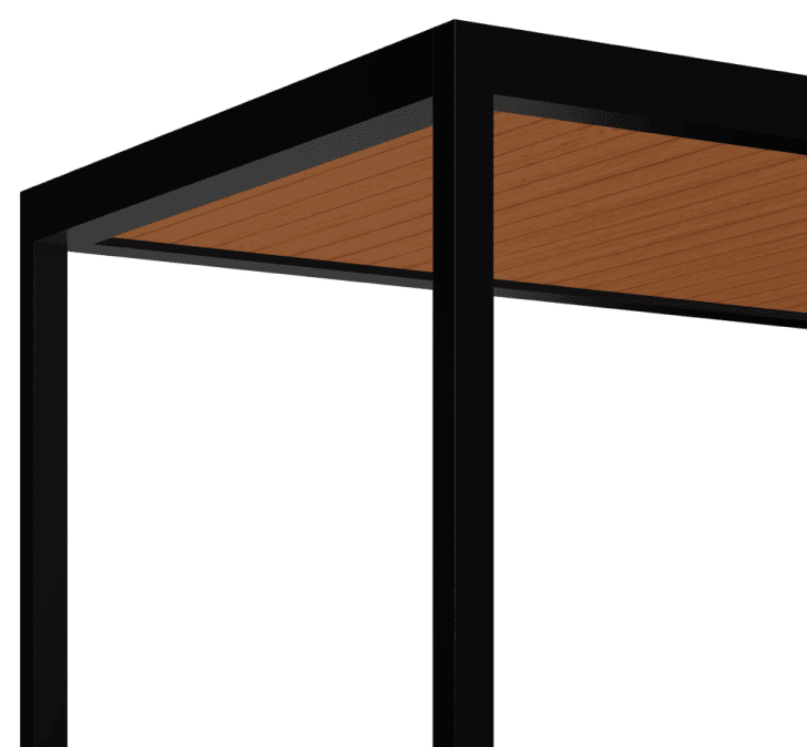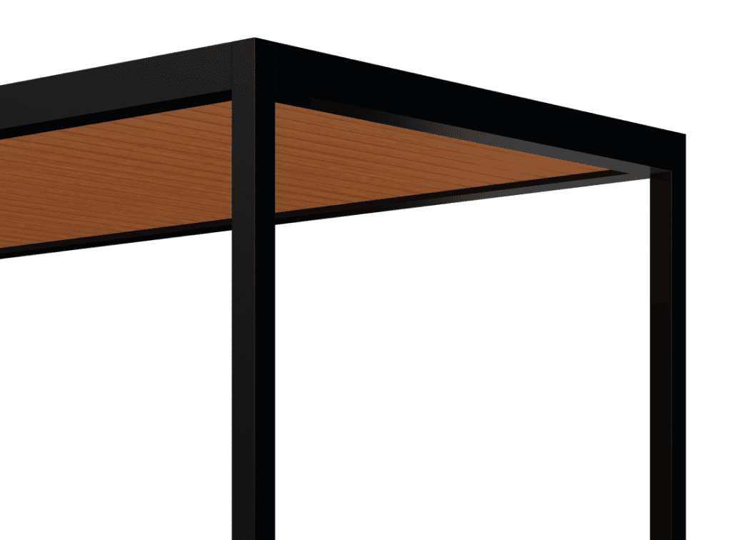 We offer a variety of powder-coated finishes and custom colors, enhancing both durability and appearance. Additionally, the roof panels can be covered with aluminum wood grain soffit tongue-and-groove planks or WPC (Wood Plastic Composite) roof cladding for a natural, textured look.